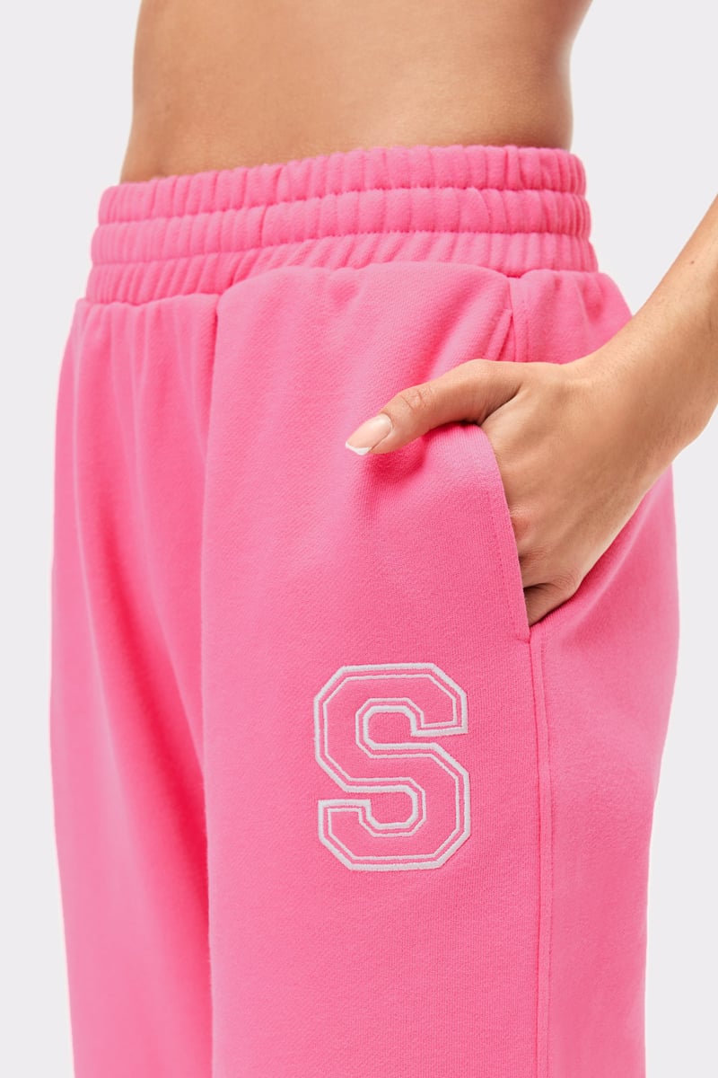 Die Essential Sweatpants in leuchtend rosa sind für Komfort gemacht, egal wohin dich der Tag führt.Mit einem leicht angerauten Frottee-Innenfutter und einer glatten Außenoberfläche fühlen sie sich weich auf der Haut an und bleiben dabei atmungsaktiv und bewegungsfreundlich. Die mittelhohe Taille und die normale Passform schaffen eine entspannte und dennoch schmeichelhafte Silhouette – perfekt zum Entspannen, für Freizeitausflüge oder leichte Aktivitäten. Seitentaschen und ein elastischer Bund mit verstellbaren Kordelzügen sorgen für Funktionalität und Komfort. Abgerundet mit einem klassischen "S"-Patch am linken Bein vervollständigen sie den zeitlosen Athleisure-Look.