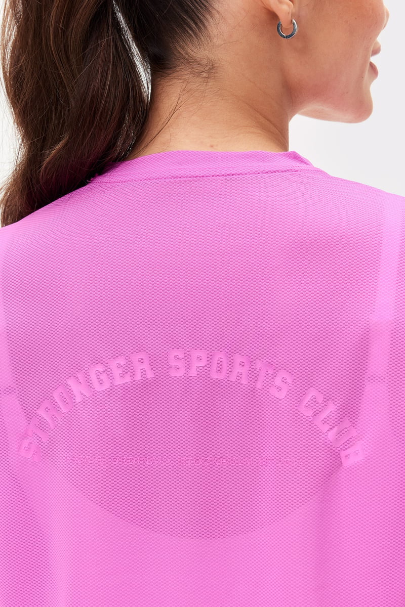 Das Mesh Running Long Sleeve in Rosa ist für Läufer entwickelt, die sowohl Leistung als auch Komfort fordern. Dieses locker sitzende Oberteil verfügt über dünnes Mesh-Gewebe, das unglaublich atmungsaktiv, schweißableitend und schnelltrocknend ist - perfekt für deine intensivsten Trainingseinheiten. Das Design umfasst praktische Details wie Bündchen mit Daumenlöchern für zusätzliche Abdeckung und ein reflektierendes Logo am linken Ärmel für Sichtbarkeit bei frühmorgendlichen oder abendlichen Läufen. Mit einem großen tonalen Print auf der Rückseite kombiniert dieses langärmelige Shirt Funktionalität mit Stronger's charakteristischem Stil und ist ideal für hochintensives Training und Langstreckenläufe.