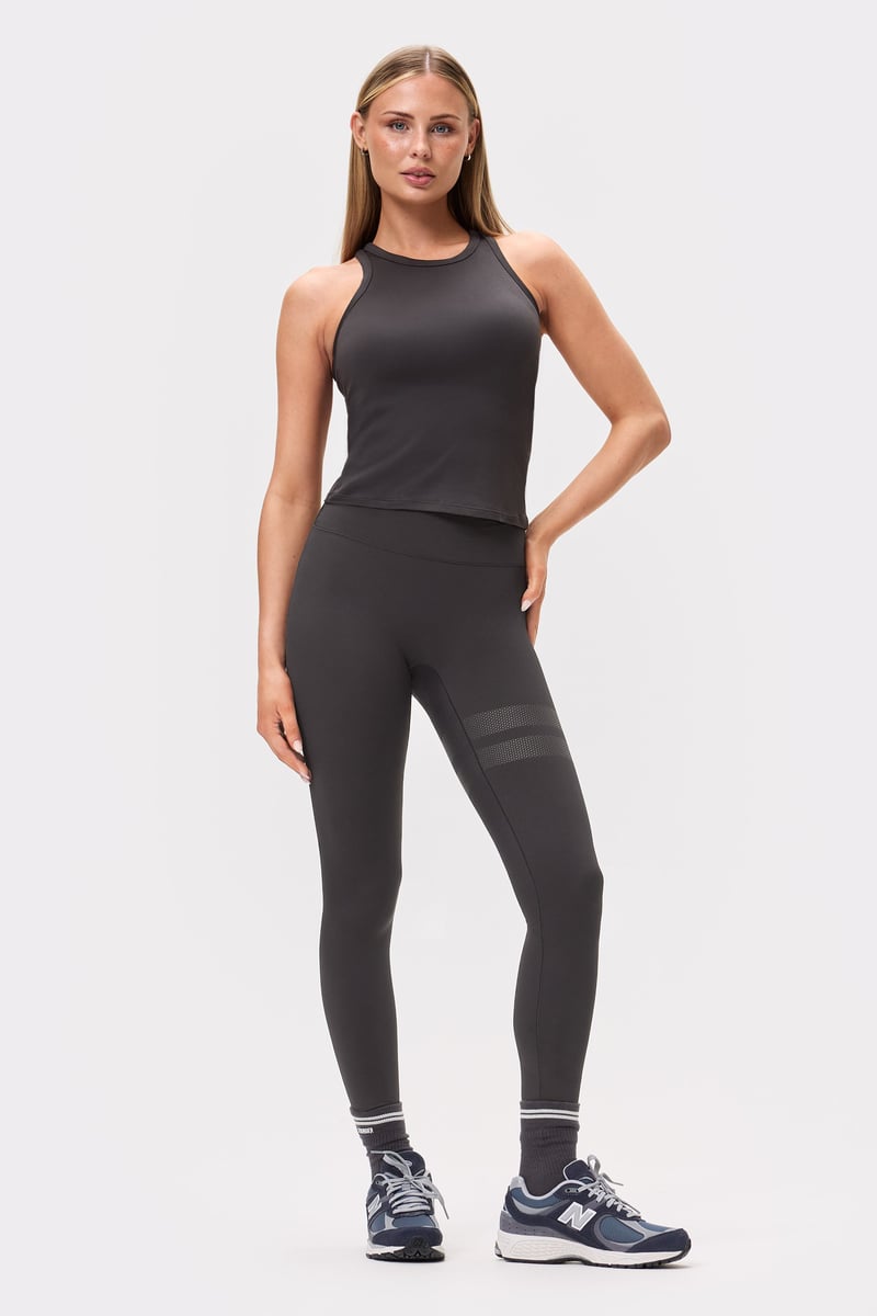 Die Signature One Leggings in dunkelgrau sind aus einem dehnbaren Vier-Wege-Stretch-Material gefertigt und darauf ausgelegt, alles zu bewältigen. Von langsamen, achtsamen Yoga-Flows bis hin zu hochintensiven HIIT-Sessions – sie sind gemacht, um zu performen, egal wie dein Workout oder Tag aussieht. Sie bleiben durch den hohen Bund und das innenliegende Power-Mesh für zusätzlichen Halt bei jeder Kniebeuge, Dehnung und jedem Sprint an Ort und Stelle. Das blickdichte Material gibt dir vollstes Vertrauen, während die Konstruktion ohne vordere Naht eine glatte, schmeichelhafte Passform schafft. Atmungsaktiv, schweißableitend und schnelltrocknend – diese Leggings aus Funktionsmaterial vereinen Performance und Komfort und sind perfekt für hochintensives Training, damit du für jede Bewegung, jeden Tag bereit bist.