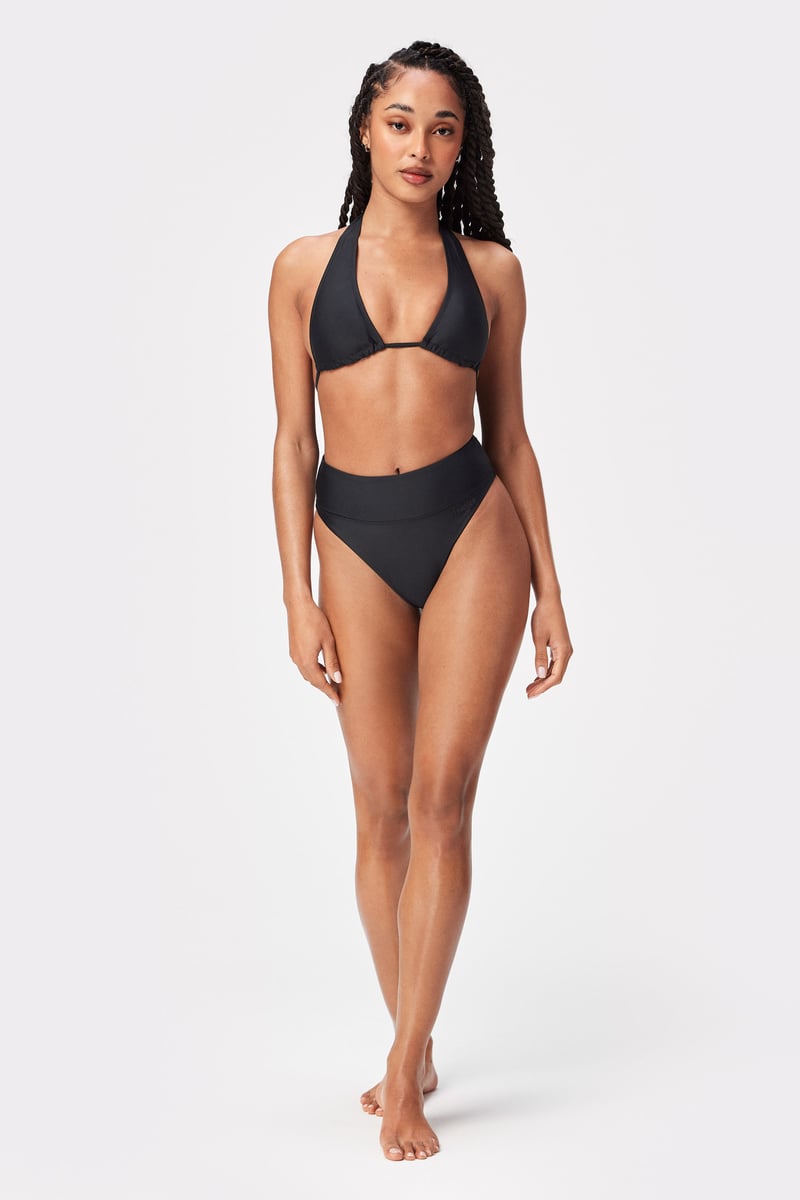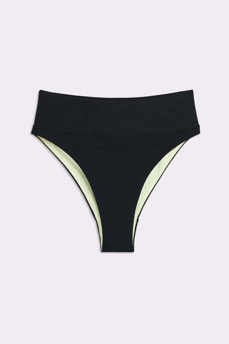 Our black High Waist Bikini Bottom is made of a smooth, shiny, quick-drying fabric that is also breathable - perfect for the beach. This bikini bottom is designed with light orange lining and a high-cut leg for a flattering look.