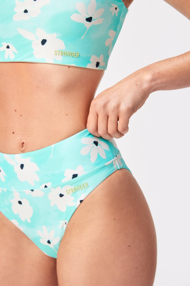 Our flower-printed High Waist Bikini Bottom is made of a smooth, shiny, quick-drying fabric that is also breathable - perfect for the beach. This bikini bottom is designed with light orange lining and a high-cut leg for a flattering look.