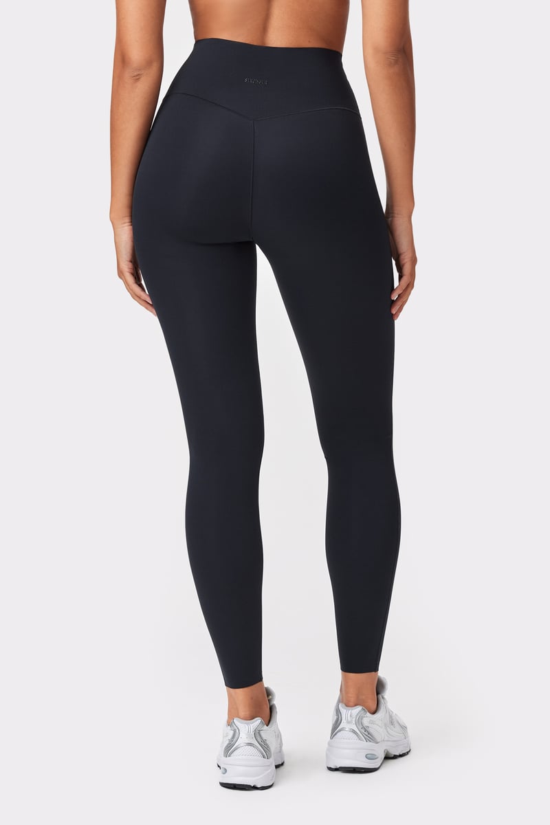 Our Sleek Leggings are high-waisted and are made from a luxurious, thin fabric that enhances your silhouette. These black leggings are crafted from a weightless material that also is sweat-wicking, quick-drying, and breathable - ensuring comfort during workouts by keeping you cool and dry. The stay-up silicone material inside the waistband helps prevent the tights from slipping down - so you can move without any distractions. Get the perfect sleek look in these leggings.