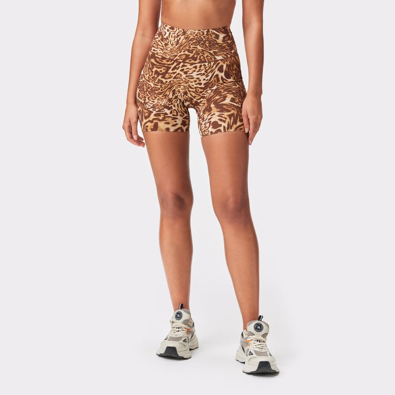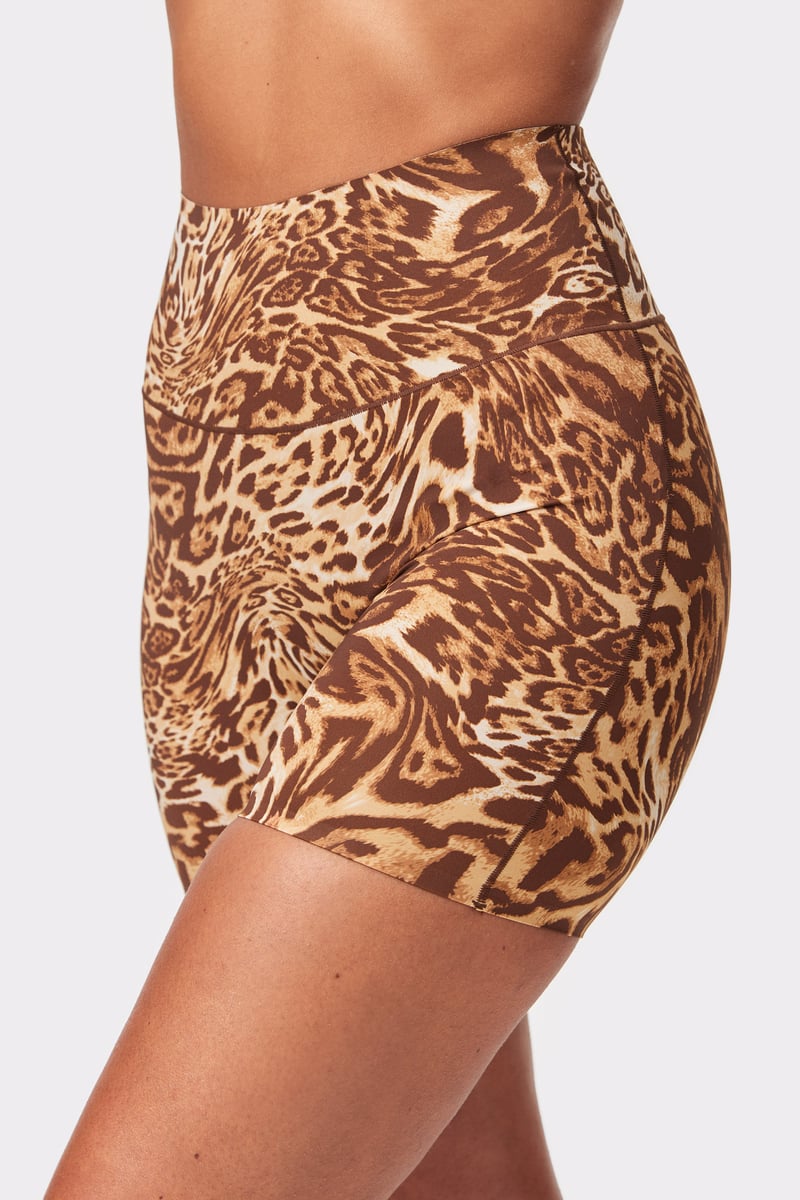 Our Sleek Shorts are high-waisted and are made from a luxurious, thin fabric that enhances your silhouette. These leopard-printed shorts are crafted from a weightless material that also is sweat-wicking, quick-drying, and breathable - ensuring comfort during workouts by keeping you cool and dry. The stay-up silicone material inside the waistband helps prevent the shorts from slipping down - so you can move without any distractions.