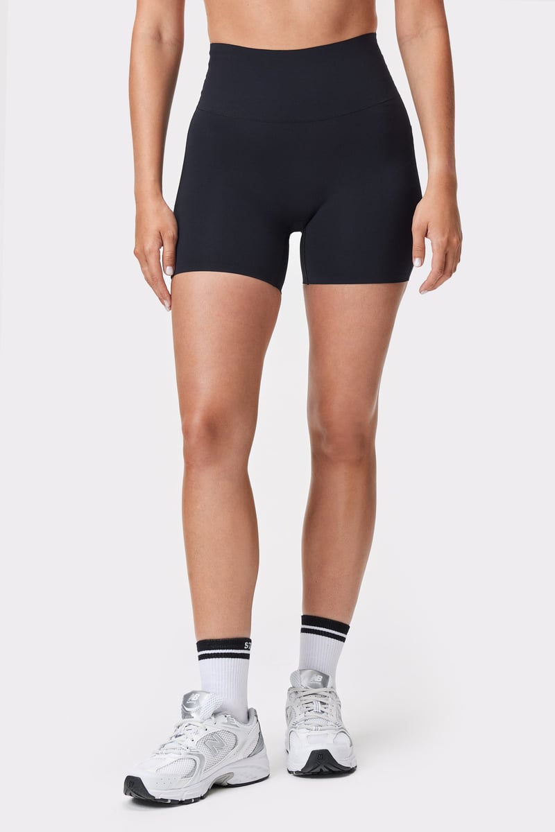 Our Sleek Squared Sports Bra offers medium support and is made from a luxurious, thin fabric that enhances your silhouette. This black sports bra is crafted from a weightless material that also is sweat-wicking, quick-drying, and breathable - ensuring comfort during workouts by keeping you cool and dry. It is designed with padded lining at the front, smooth bonded edges and flattering seams that create a sleek look.