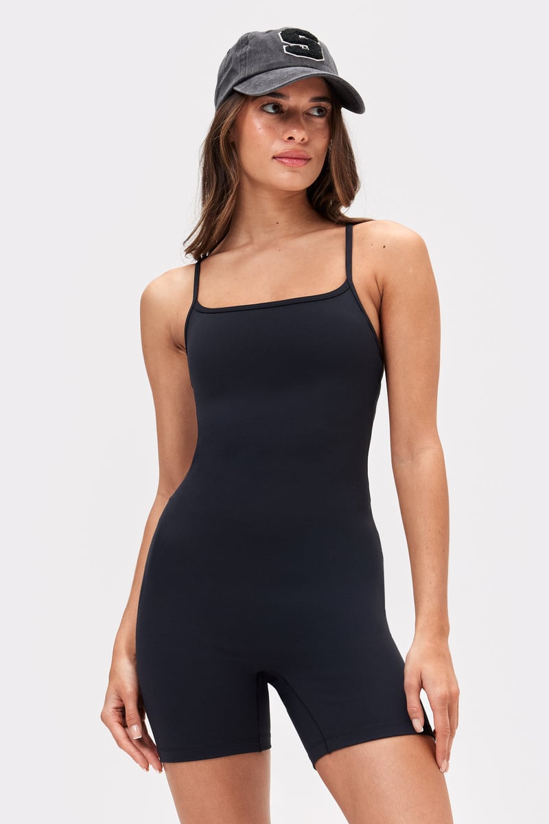 Our black Soft Court Jumpsuit has a soft, peach-fuzz feel and offers light support—perfect for low-intensity workouts. Want to take it beyond the mat? Wear it with a pair of track pants or layer it under a sweatshirt for an everyday look. This jumpsuit is designed with adjustable straps, a deep back, and no front seam for a flattering fit.* Low support* Slim fit* Functional, peached fabric* Pull-on-model* Built-in sports bra* Removable pads* Sweat-wicking* Quick-drying* Breathable* No front seam* Adjustable straps* Deep back* Stronger logotype at back* Inseam length in size S: 12.5 cm, M: 13 cm, L: 13.5 cm