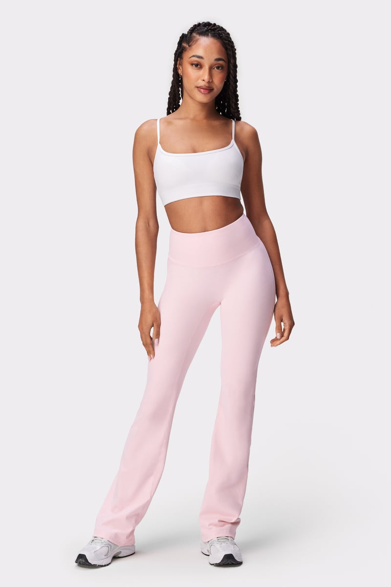 Our pink Soft Flared Leggings are made from stretchy and functional fabric, making them perfect for workouts and everyday wear. They are sweat-wicking, quick-drying, breathable and have a fantastic second-skin feel. Designed with flared legs, a pocket in the waistband, and no front seam - these leggings offer both style and function.