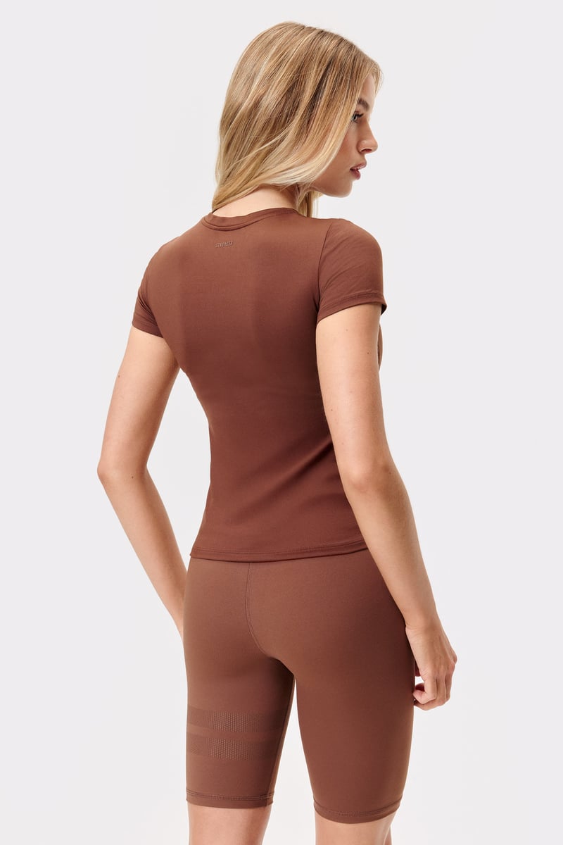 The One T-shirt in light blue offers a perfect fit that you'll want to wear all day, every day. Made from a groundbreaking material, it is incredibly soft against the skin while also being sweat-wicking, quick-drying, and breathable. Whether you're going to your favorite workout class or pairing it with today's outfit, this T-shirt is ready for anything.